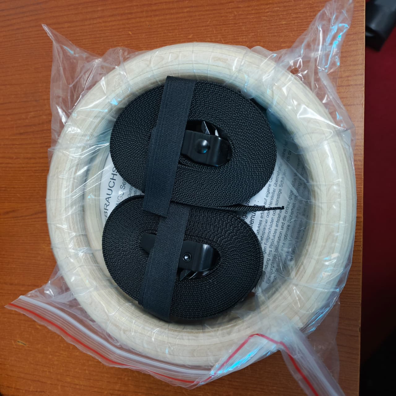 Durable BEAR GRIP wooden gym rings with numbered straps for perfect height adjustment—ideal for pull-ups, dips, and full-body workouts.